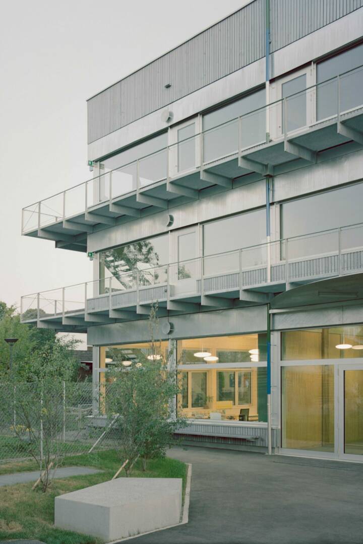 1. Verticality to reduce land occupation. Instead of opting for a horizontally- expanding land occupation – as is the case for 90% of school designs – Reggio School is a compact vertical building. This design decision minimizes the building’s footprint, optimizes the overall need for foundations, and radically reduces its façade rate.