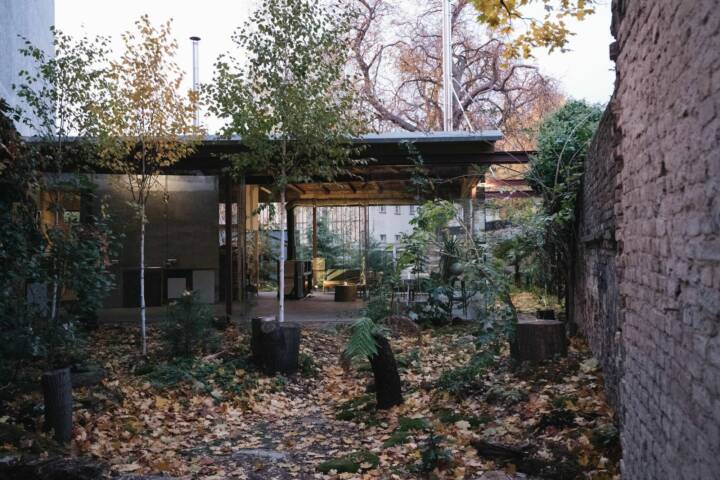 2. An existing pit in the land on site has been made into a sunken courtyard in front of the house. Trees are grown within almost bringing the green foliage into the house.