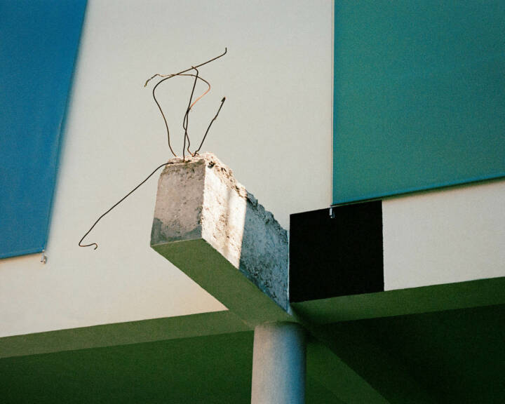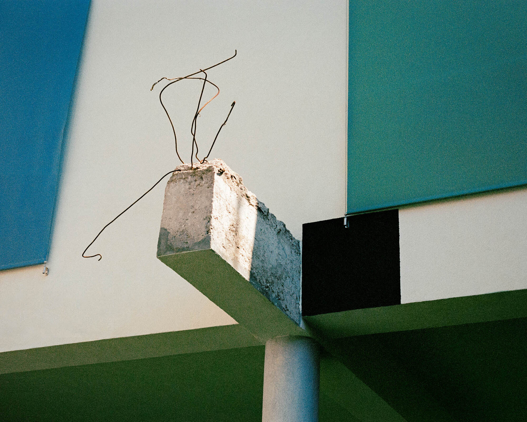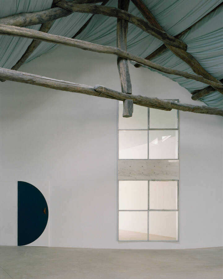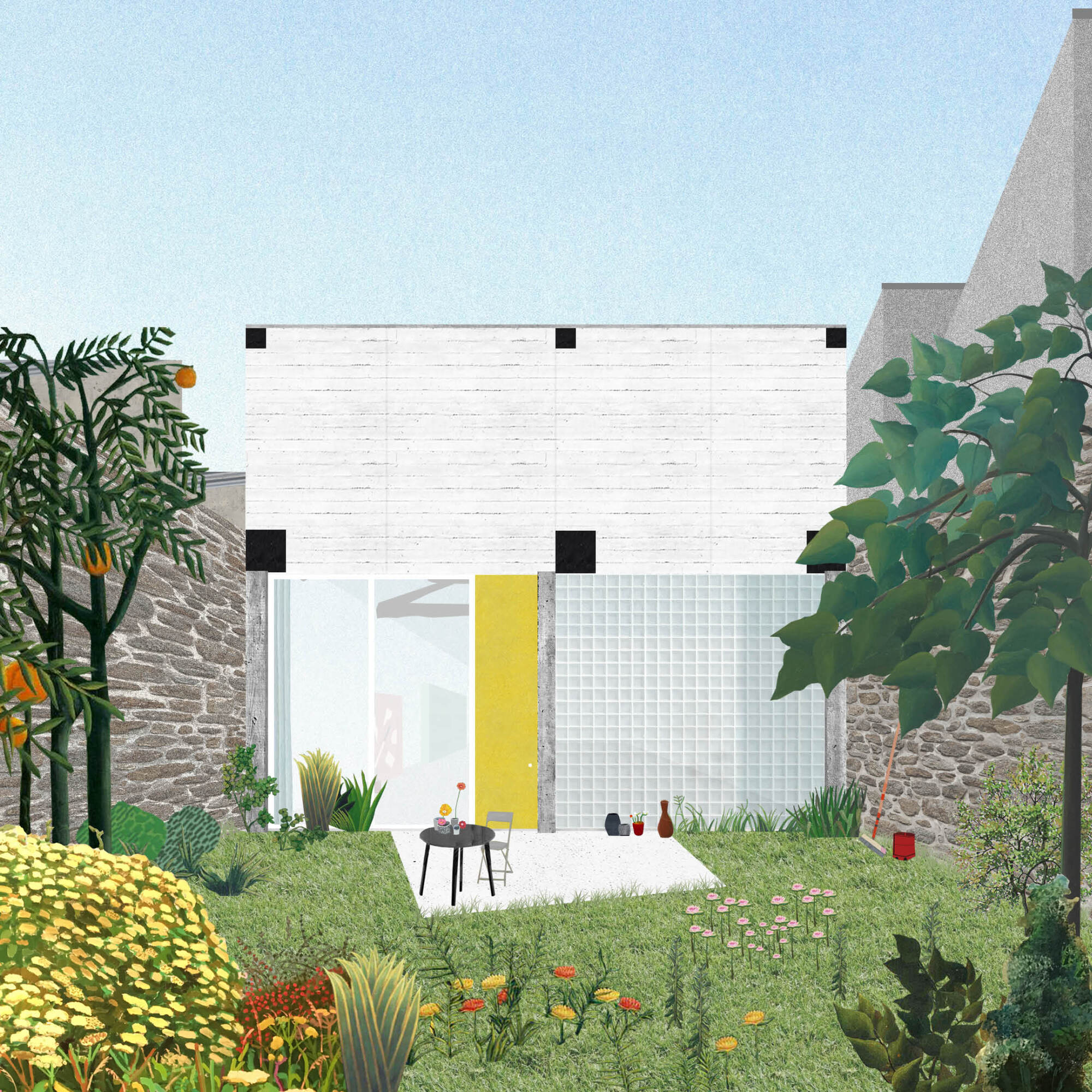 Reoccurring pairs of windows, yellow doors, green shutters and surfaces of glass brick correspond to intricate rooms, devise tense compositions and charismatic personas. the former warehouse is a house of many faces.
