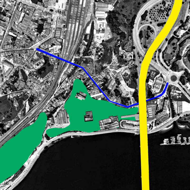 The project is conceived as a series of cuts across the lengthy perimeter. five facets are reassessed and introduced to order the extensive space. The two parts are now separated by an inner courtyard. The building in front takes in a series of small apartments, dividing the space with several slight gestures. The warehouse simply turns into a massive living room that is then interrupted by one curved wall. A proper kitchen and a monumental fireplace are the only hints of uncertain domesticity.