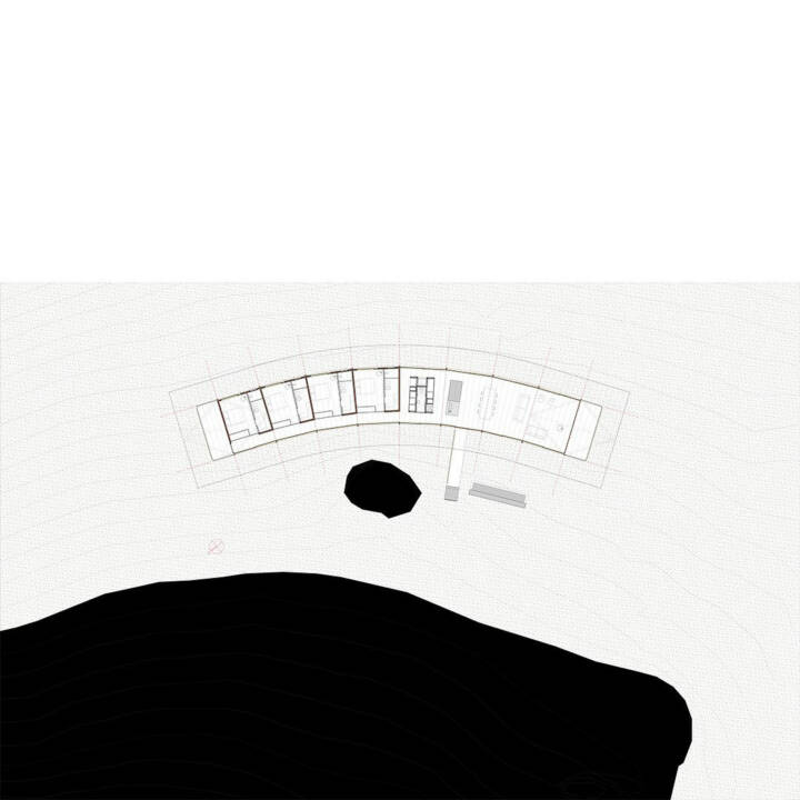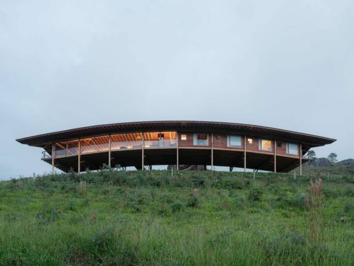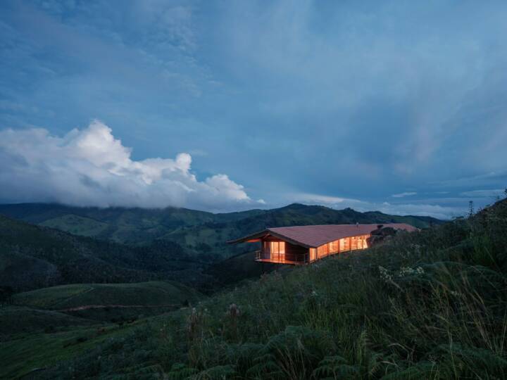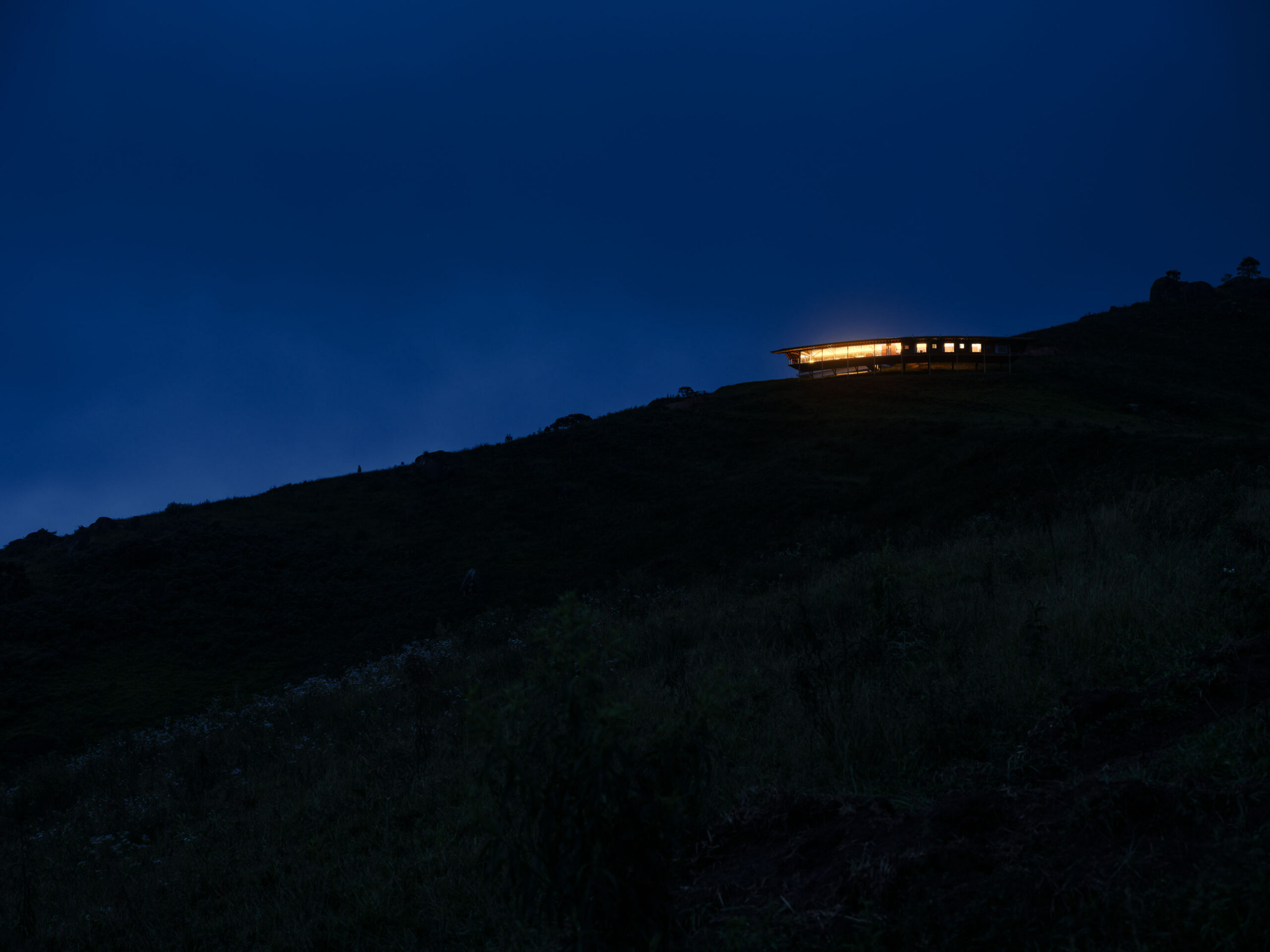 Read MoreCloseThe structure’s arched geometry references this striking feature of the landscape and the natural contours of the terrain. It also serves as a clever way to withstand the horizontal forces of high-altitude winds while minimizing the use of wood and metal bracing. The landscape shapes the project, and its form is its structure.