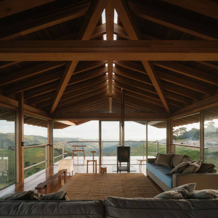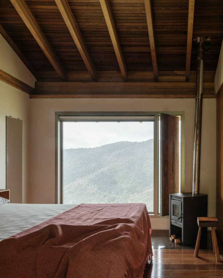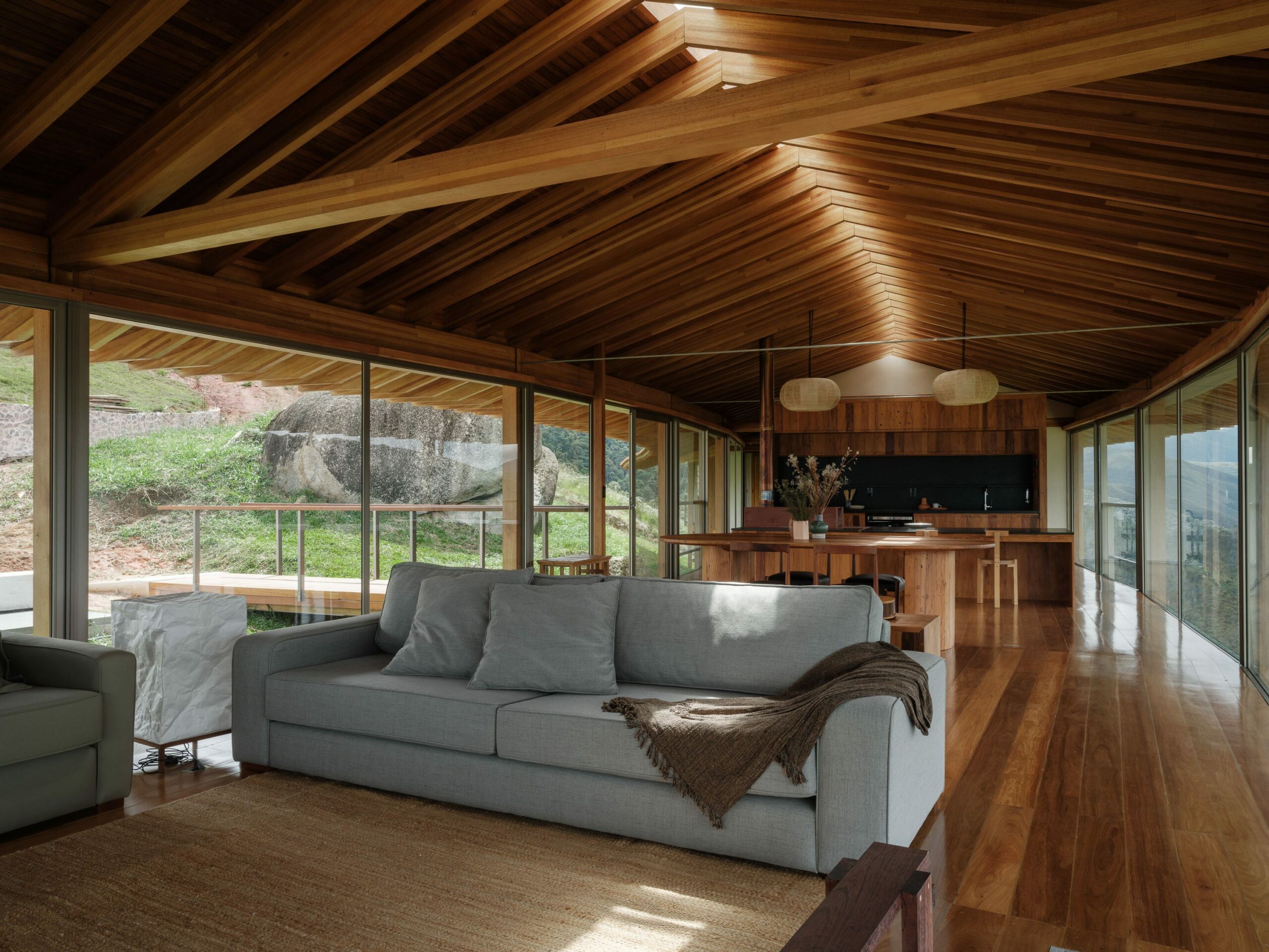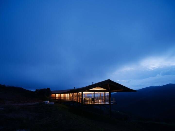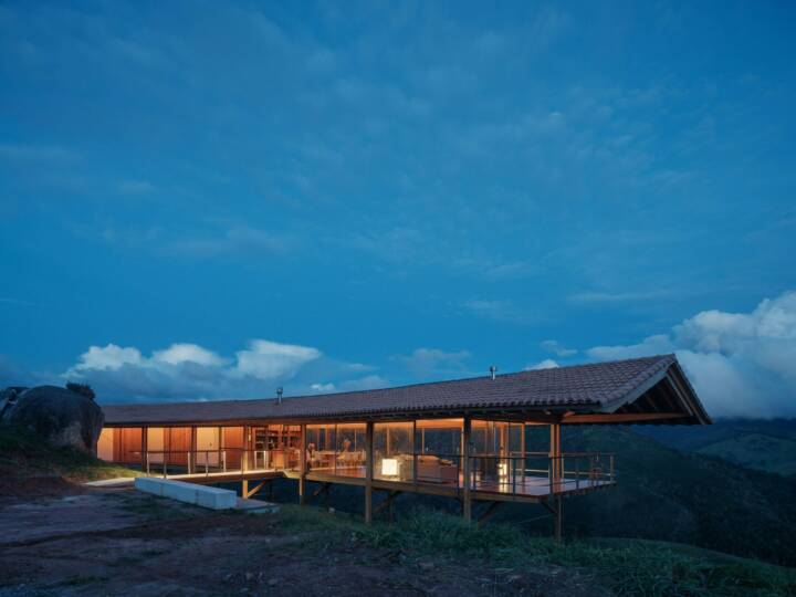 The Terra Nostra farm project included the location of the main house, as well as support buildings for a small cheese production operation, in a mountainous terrain. At 1,530 meters above sea level, next to Serra da Bocaina National Park, the horizon is vast.