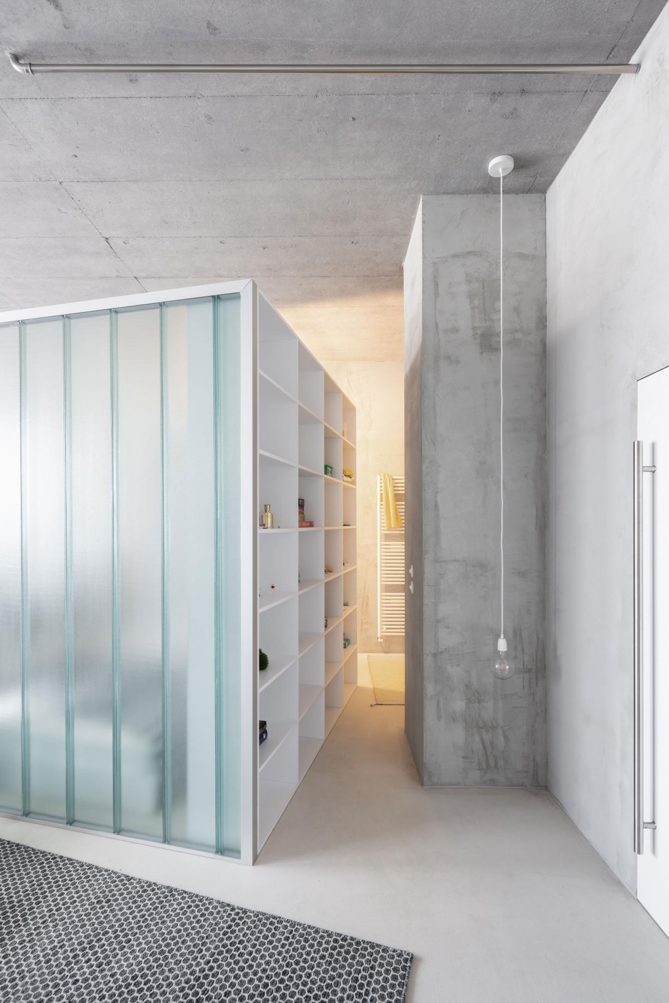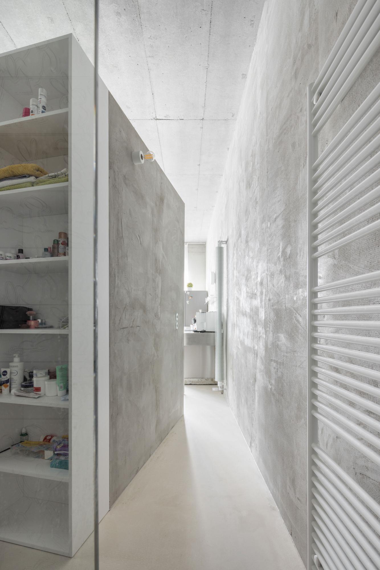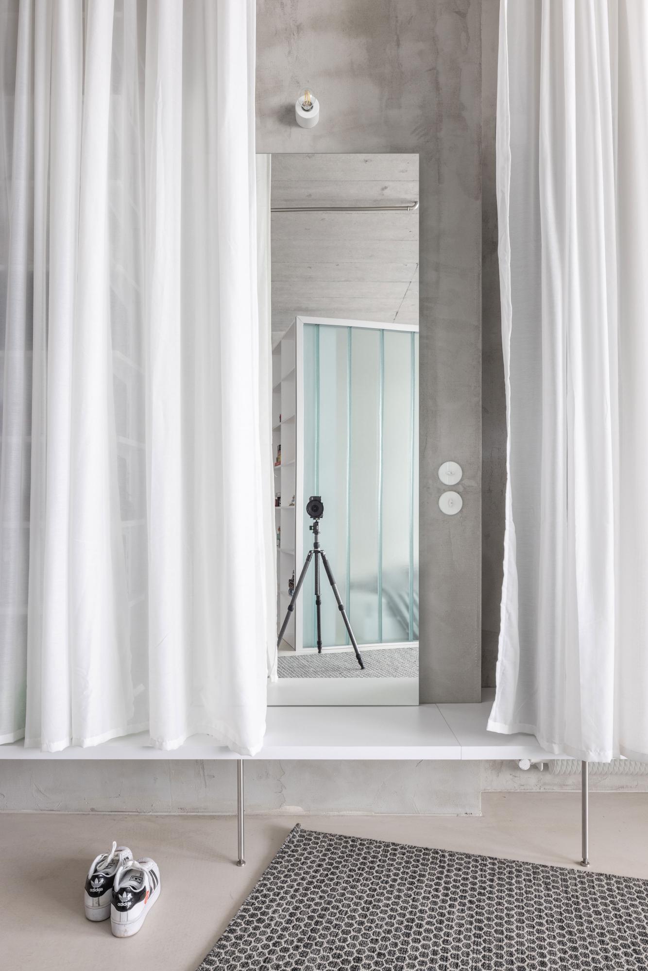 The original scheme of the apartment did not fit the brief for this project. We wanted to arrange the interior in a way that achieves a feeling of lightness and ethereality. Something that is big and small at the same time. On one side there is a bit much, on the other a little. To define the space, but also not to.